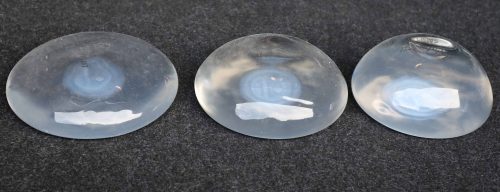 These silicone implants are all virtually the same volume but are different in profile: moderate, high and ultra-high (from left to right)