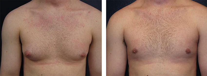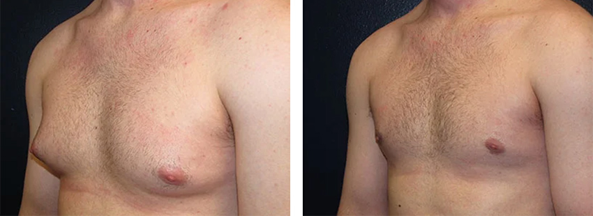 Pseudogynecomastia is a “variant” of true gynecomastia where the enlargement of the male breast is caused by fat and not glandular tissue. Consequently, the treatment is different – usually involving liposuction to remove the fat and reduce the breast size.