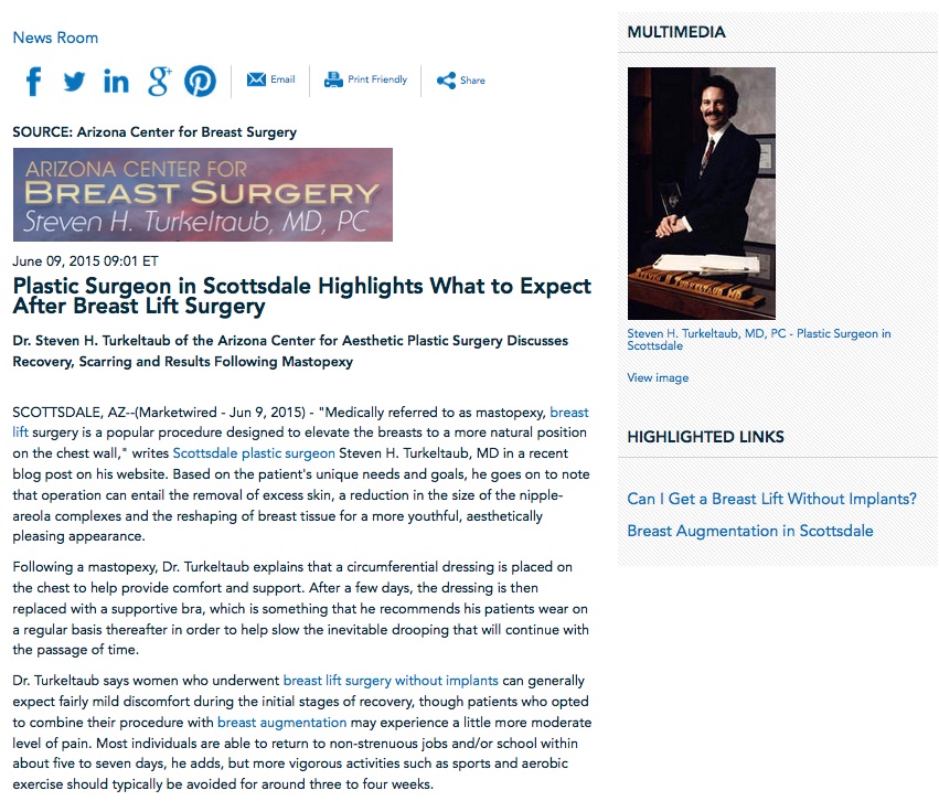 Home|News Room | Plastic Surgeon in Scottsdale Highlights What to Expect After Breast Lift Surgery